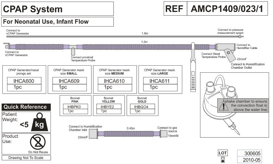 • генератор nCPAP Inspiration с канюлями назальными (размеры Small – 1шт., Medium – 1 шт., Large – 1 шт.) и линейкой-указателем размеров